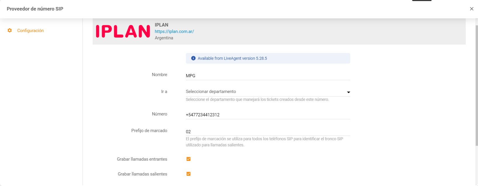 Simply navigate to Configurations > Call > Numbers > iPlan. Add the VoIP number and use it right away.