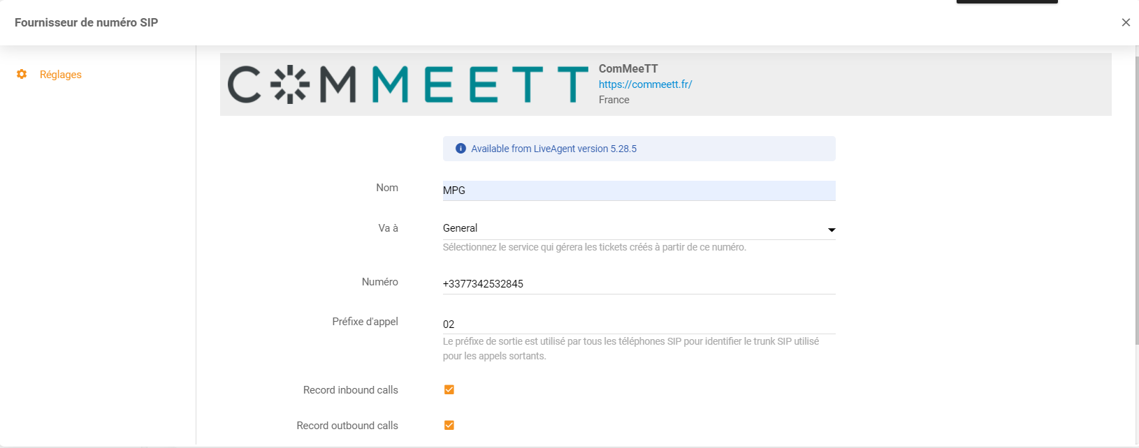 Simply navigate to Configurations > Call > Numbers > ComMeeTT. Add the VoIP number and use it right away.