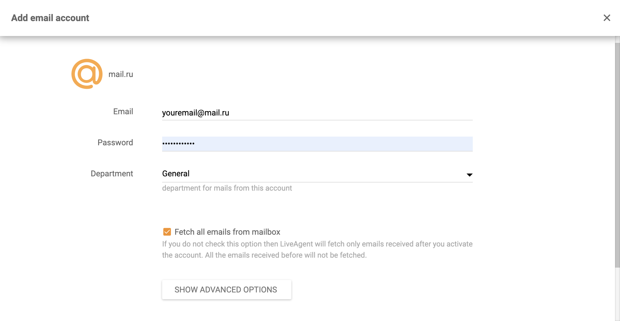 Your Mail.ru integration is complete and now all customer emails from your Mail.ru will redirect to your LiveAgent ticketing system.