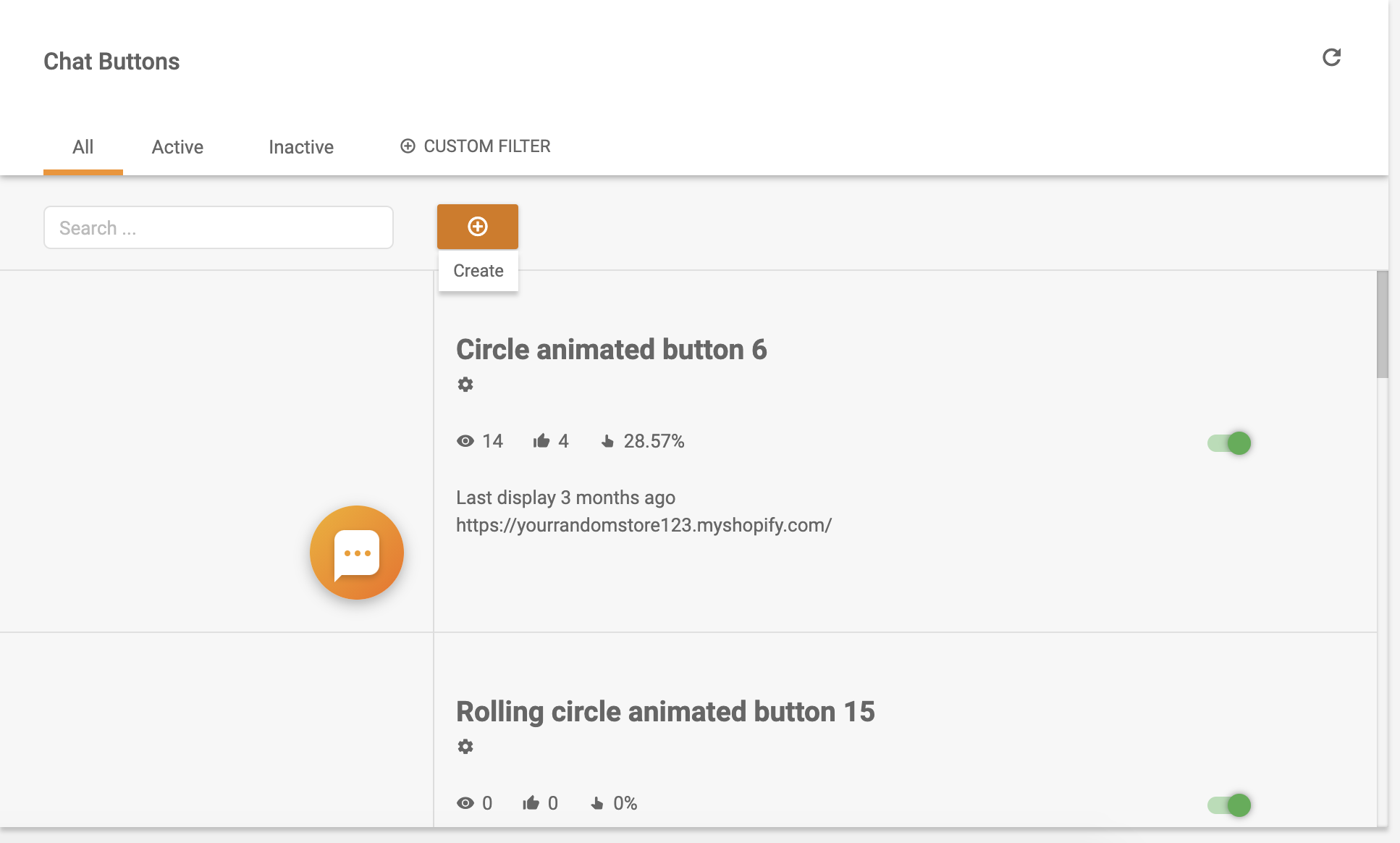 - Go to your LiveAgent account and open Configuration > Chat > Chat buttons. Click on the orange Create button to start creating your new live chat button.
