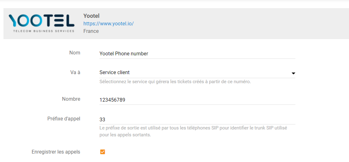 The phone number is in LiveAgent and ready for use. If you prefer, you can add more Yootel phone numbers or add numbers from other VoIP providers.