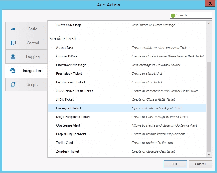 You can enable NetCrunch to post alerts as Tickets directly to your LiveAgent Helpdesk but first, you have to set up an Integration Profile for LiveAgent.