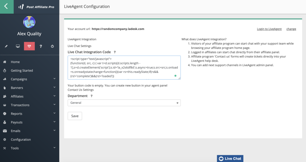 How to integrate LiveAgent with Post Affiliate Pro
