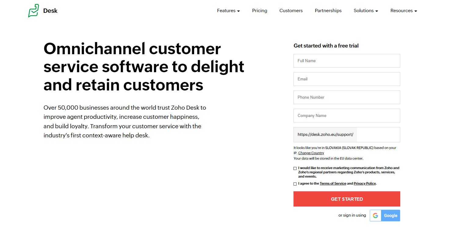 Zoho Desk has four service levels, a free version with limited features, a $14, $23, and $40 per month per agent option. There is also 15-day free trial software.