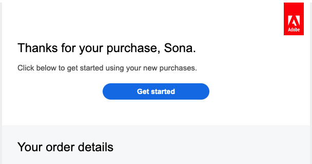 This thank you email is sent after someone makes a purchase and becomes your customer. Such a message fulfills the objective of building customer loyalty and can also suggest other related products that may be of interest to that client.