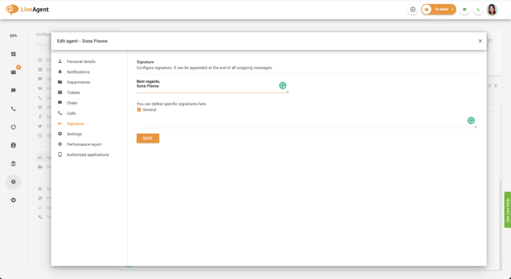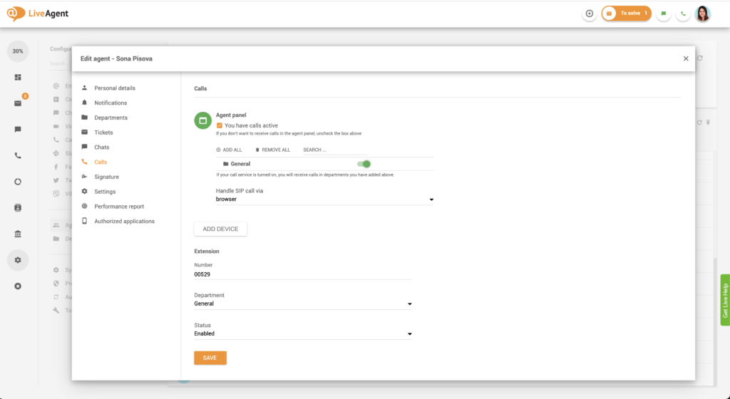 - Log in to LiveAgent.